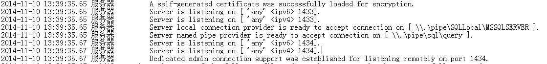 這?的Shared Memory是專供本地連接通過LPC(Local Procedure Call)技術(shù)向SQL Server做的連接。它不走網(wǎng)絡(luò)層,所以他是速度最快的連接方式。正常啟動(dòng)后會(huì)顯示上面的正常日志。
