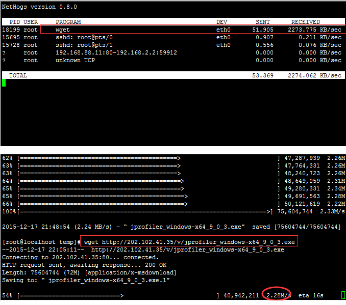 yum install ncurses* tar -zxvf nethogs-0.8.0.tar.gz cd nethogs make && make install