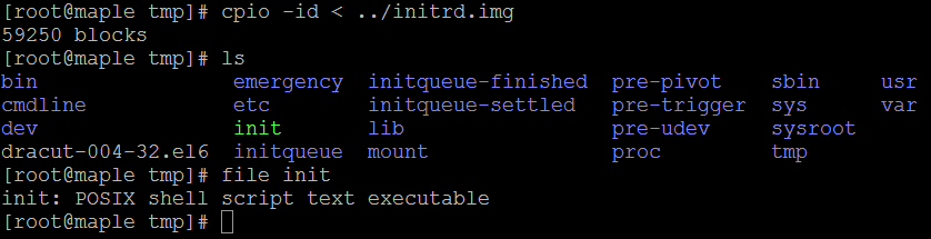 在tmp文件夾中解壓initrd.img里的內(nèi)容:
